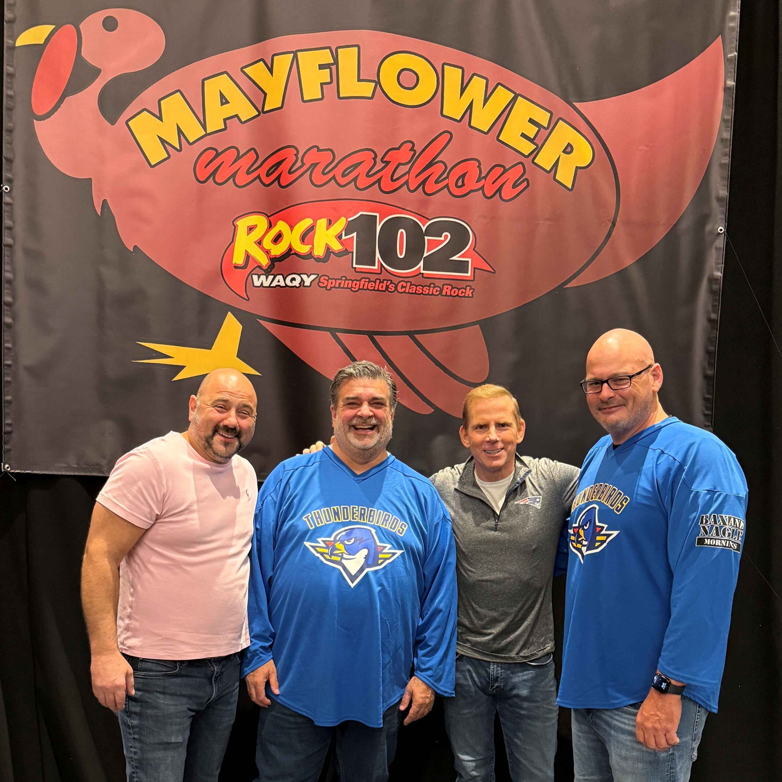 Nationally acclaimed comedian Tom Cotter headlined, joined by special guests Steve Nagle and Corey Gee, along with Bax who served as host for the evening. The evening featured a silent auction, cash donation match, and commemorative Springfield Thunderbirds Mayflower Marathon jerseys for sale. $12,877 was raised which will be donated to the Mayflower Marathon to benefit the Open Pantry of Springfield.