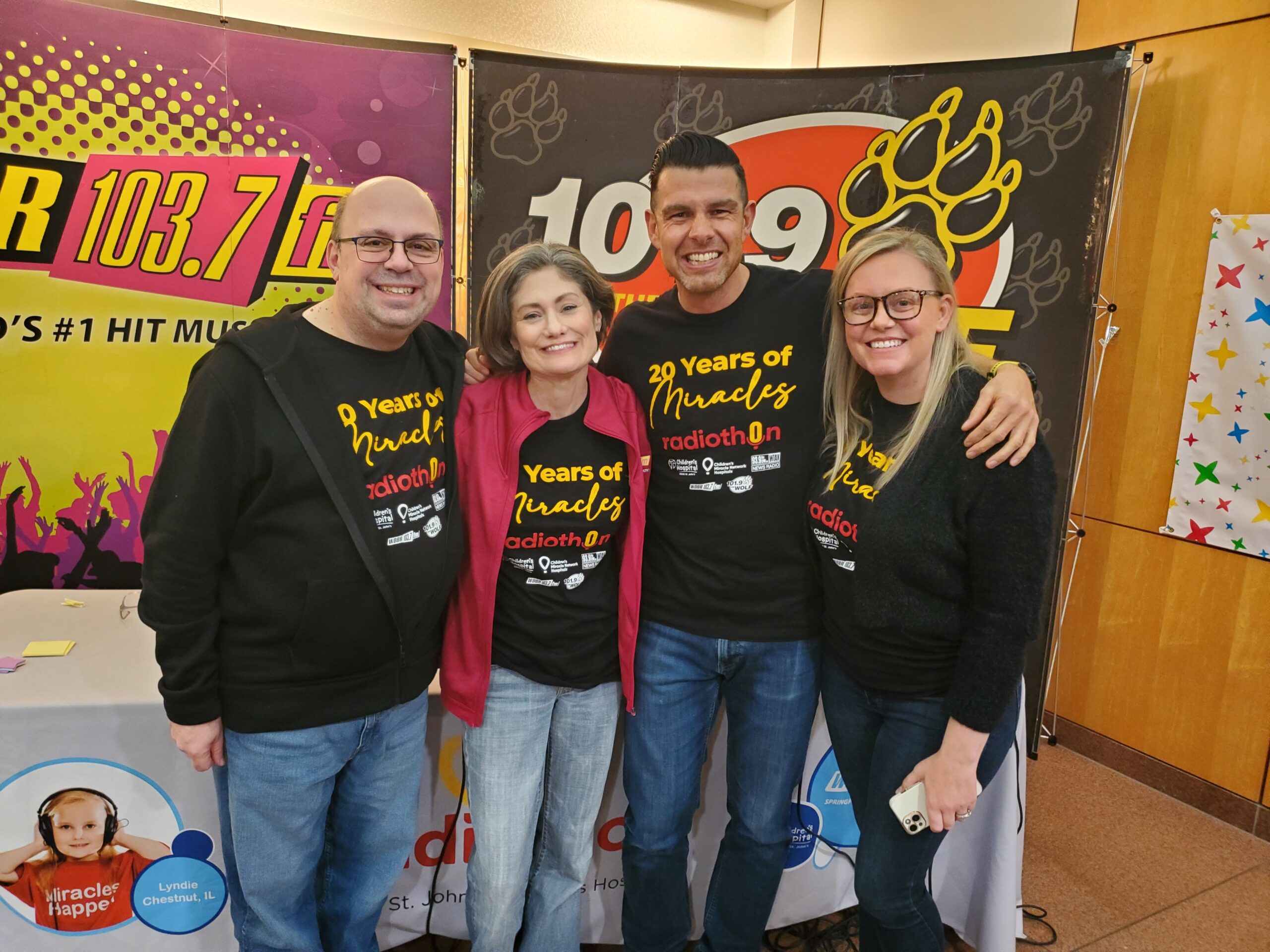 (SPRINGFIELD, IL) – The Capitol Media Group wrapped up the 20th Annual Cares for Kids Radiothon to benefit the Children’s Miracle Network and HSHS St. John’s Children’s Hospital! The event took place this past Thursday and Friday (11/20 and 11/21), where air talent from 103.7 WDBR, 101.9 The Wolf (WLFZ-FM), and 93.9 FM / 1240AM WTAX broadcast live all day for each of the two days. Blake Stadel, Dina Michaels, Mikee Connolly, Will Stevenson, and Sarah Smerz interviewed doctors, nurses, patient families, and donors during the Radiothon.